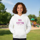 Personlig storasysterhoodie. Fet typografi som stavas stor syster i rosa och lila. Designen är personlig med ett anpassat namn. Vacker design att ge till en stor syster, få henne att känna sig speciell och visa kärlek för hennes yngre syskon.