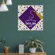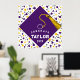 Kreativ studenten gratulerar poster, med lila sockel med guld-tassel på konetti-bakgrund. Om du vill anpassa texten lägger du till klassens namn och överordnade klassår.
