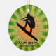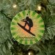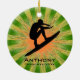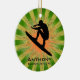 Surfande ornament med anpassning av anpassadet. Surfer på en bräda mot en grönt och orang e starburst-design.