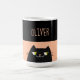 Söt, rolig, enkel, modern, kawaii svart katt och luddigt peachfärgad personlig mugg med namn.