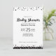 En enkel, trendig och modern design med svarta och vita prickar. Bandets färg på denna inbjudan till baby shower kan enkelt anpassas till ditt tema genom att använda verktyget för ytterligare anpassning. Uppdatera texten med dina evenemangsuppgifter också, imponera på henne och hennes gäster med ett sådant bedårande tema, hitta de matchande bitarna till denna samling.