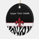 Personlig svart röda Sebra Fleur de Lis Julgransprydnad Keramik
