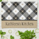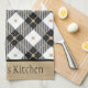 Svart vit och guld Buffalo-ruta kökshandduk. Personliggör med ditt namn eller text.