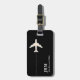 Ett objekt av elegant med bilden av ett vitt flygplan på svart (anpassningsbar färg) för att identifiera dina tillhörigheter