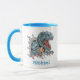 Lägg till ett barns namn i mugg med en T-Rex-dinosauer för att skapa en underbar gåva till dinosauer fläkt.