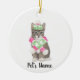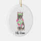 Personlig Tabby katt (Grått) Rosa och Grönt Scarf Julgransprydnad Keramik