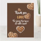 Tack för personligens utformning i brunt kaffe med små kärlek-kakor och ett "Tack för att du ge detta hem och extra hjärta"-budskap.