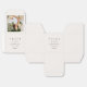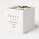 Elegant tacksamhetslåda för bröllopsfest, personlig med ett foto, namn och datum i taupe och svart.