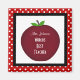 Röd äppelmagnet, i svart med vitt polka dots. Anpassa genom att ändra text och lägga till lärare i namn.