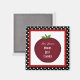 Röd äppelmagnet, i svart med vitt polka dots. Anpassa genom att ändra text och lägga till lärare i namn.