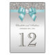 Personlig Teal Blue Faux Bow Silver Sequins Bordsnummer