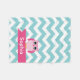 Ett modernt tealblått schevron mönster och ett sött rosa uggla finns med på denna filt av hög kvalitet. Anpassa enkelt till ett barns namn.
