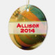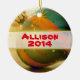 Anpassa med din egen text. Ett foto av en ljus och glansig dradroppformad helgdag som dekorerar julgran. Det här festliga boll formas som en luftballong. Färgad en säsong-grönt med orange rand med helig blek omgiven av gyllene stjärnor och cirklar.