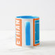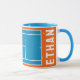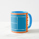 Kreativ tennisspelare presentmugg med tennisbollar på blå och orange tennisbana. För att anpassa, redigera texten för att lägga till hans eller hennes namn.