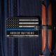 Thin Blue Line Luggage Tag - American flagga in Police Flagga färger, nödlidande design. Personligen med polistjänsteman namn eller namn. Denna personlig polistjänstemans bagagetagg är en perfekt för polisens och tillsatta lagar familjernas familjer och alla dem som stöder dem. COPYRIGHT © 2020 Judy Burrows, Black Hund Art - Med alla Höger reserverade. Personlig Thin Blue Line American Flagga Police Luggage Tag