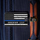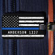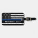 Thin Blue Line Luggage Tag - Amerikansk flagga i Police Flagga färg, tryckt design . Personalisera med polistjänstemannen namn eller namn i familjen. Denna personlig polistjänstemans bagagetod är perfekt för poliser och familjer i tillsatta lagar och alla dem som stöder dem. COPYRIGHT © 2020 Judy Burrows, Black Hund Art - Med alla Höger reserverade. Personlig Thin Blue Line Flagga Polischef Luggage Tag