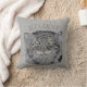 dekorativ kudde har en grått-bakgrund och en handritad bild av en tibetansk Pallas Cat i stil. Grått handskrift stil brev ovan kan vara personlig med ditt eget namn eller ett kort-meddelande.