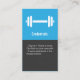 Ett modernt, rent, slimmat affärskort med vektorkonturen av en provbbell med rundade vikter över en blå och svart bakgrund. Anpassa enkelt med dina kontaktuppgifter. I stället kan du inkludera dina referenser eller en beskrivning av det specifika området utbildningstjänster. Perfekt för frilansutbildare, träningsutbildare och alla inom friskvårdsbranschen. Den blå bakgrunden färg kan ändras i anpassningsläge till kostym om du vill ha en personlighet.