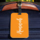 Anpassa denna roliga, trendiga skript kalligrafi väska tagg med ditt namn! Detta är den ljusa orange versionen. Perfekt för din sommarlov, möhippa, barns sommarläger eller vårledighet!