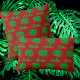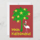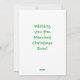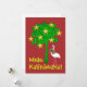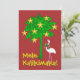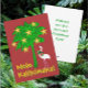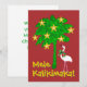 Gröna palmer och Mele Kalikimaka-text på en rik julröd bakgrund. En rolig tropisk look för dina julkort. Personifiera texten på framsidan och baksidan.