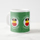 Jättekaffemugg för att fira jul med denna ängel iklädd Greklands flagga. Den grekiska ängeln flyger i mitten av en vit, fraktal, cirkel av snurriga fyrkanter på en bakgrund av gröna, snurriga fyrkanter. Lägg till ditt namn, eller någon annans namn om den är en present, för att göra den personlig. Anpassa genom att ändra ?? till ett år valfritt för att skapa en mugg. Designad för att komplettera din juldekoration under högtiden. Designen visas på tre sidor. Ändra typsnitt och/eller färg på namnet, högtiden eller året genom att använda alternativet "redigera design".