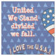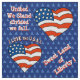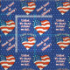 Ursprungligt patriotiskt mönster har amerikanska flagga fyllda hjärtan mot en upprepad blå triangelformgivning med "I Kärlek USA" som bådas över varandras hjärta. Du kan personalisera de två andra bildtexter som standard: "United We stand split we fall" och "Sweet Land of Liberty" eller behålla as as is.