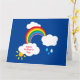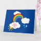 Ett underbart ljust färgstarkt väder-tema med en regnbåge, vita fluffiga moln, ett lätt duggregn och solsken.