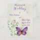 Personlig lila-fjäril-bröllopsinbjudan för din lyckligaste dag någonsin. Lägg till ditt personliga bröllopsinbjudningsmeddelande på baksidan eller lämna det tomt och skriv ditt meddelande personligen.
