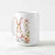 Sötkanin och blommor, vattenfärgad kanin, Söt, korall, rosa och grönt av blommor. Vintage personlig mormors Påsk mugg.