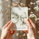 Uttryck din tacksamhet med stil med det personliga bröllopsfest-kortet med vit slinga. Detta eleganta kort har en sofistikerad design med vit slinga, vilket gör det till en perfekt match för ett förberett coquette- eller klassiskt bröllopsbrunch-tema. Det är idealiskt för att skicka uppriktigt tack efter firandet och kompletterar elegant ett bröllopsinbjudningskort med slinga.