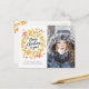 Modern Personlig vykort för julfoto med vacker varmvattenfärgad andedräkt och underbar handskriven typografi. Anpassa med ditt eget meddelande och din egen bild.