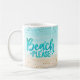 I den här roligten har kaffet mugg en turkosblå och beige vattenfärgad bakgrund med glitter-accenter och texten "Beach Snälla" i mousserande akva brev. Lägg till ditt namn längs sidan för att anpassa dig. Perfekt till morgonkaffet medan du tittar på vågar.