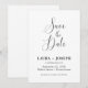 upphetsningen av ditt kommande bröllop med vårt personlig vita minimalistiska kalligrafiskript som sparar datumet. Perfekt för att planera elegant- och trädgårdsceremonier i par, romantiska strandbröllop eller modernt inomhuligt firande, den här designen exuderar tidlös charm och enkelhet. Den rena vita bakgrunden och det roliga kalligrafiskriptet skapar ett sofistikerat utseende på contemporaryn som kompletterar alla bröllop-teman. Genom att spara datumkortet och helt och hållet anpassade med namn och händelseinformation ser du till att dina gäster är beredda att gå med dig för ett minnesvärt och glädjande tillfälle.