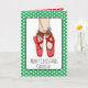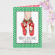 Snygg handritad julkort med röda balettstrumpor för en liten flicka. Personifiera genom att lägga till hennes namn och ditt eget anpassade meddelande inuti. Insidan av kortet är en målarsida.
