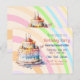 Födelsedagsinbjudningar för flickor, barn eller vuxna. Fantasifull födelsedagstårta med vacker lila, rosa, blå och gul frosting och ljus.