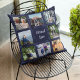 Fyll deras bostad med älskade minnen med vår Personliga present till äldre föräldrarpar Blå Kuddcover. Mot en elegant indigo-blå vintageblommig bakgrund förvandlas denna kudde till en duk med skattade minnen. Anpassa den med 16 personliga foton och hjärtliga texter för att skapa en unik berättelse om deras varaktiga resa.
