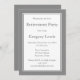 Denna anpassade medelgrå inbjudan är det perfekta sättet att inbjuda dina vänner och familj till din pensionsfest. Du kan använda exemplet på inbjudan som ingår eller anpassa texten för alla andra evenemang, till exempel en examen, bröllop eller födelsedagsfest. Du kan enkelt ändra teckensnitt, textfärg och formulering från produkten beställningssida.