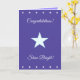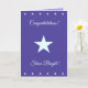 Gratulationer! Shine Bright Star på indigo blå bakgrund. Njut av ditt nästa steg i livet. Alla texter kan anpassas. Perfekt för examina, nytt jobb, befordran och alla andra betydande livsstilsförändringar.