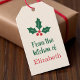 Personliga julklappsbrickor med järnekdesign presentetikett