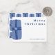 Festliga kort med vår design med blå inslagna julklappar. Anpassa med ditt eget julmeddelande och lägg till ditt familjenamn eller din valda text längst ner. Illustrationer från konstnärens egna teckningar. Matchande artiklar tillgängliga. Vänligen kontakta mig för ytterligare anpassning och specialförfrågningar. © Zoe Chapman Design