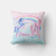 Enhörningskudde med söta pastellfärgade vattenfärgsehörningar på en regnbåge- och moln bakgrund. Denna söta enhörningskudde kan enkelt anpassas med den text du önskar.