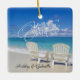 En strandplats med två Adirondack stolar i sanden med hav vinkar att krascha upp. "Är god jul" i en finare skrivar. Personifiera, genom att tillfoga dina namn.