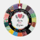 Denna personligprydnad presenterar en nätt gräns som mönstras för att se något liknande ett sytt patchworktäcke och, läser lycklig årsdag runt om kanten. Skräddarsy den för en speciell brud och brudgum by däribland deras namn, och du kan ändra bröllop daterar, och årsdagen numrerar runt om centrera. Rosa hjärtor och en variation av den färgrika blommigten, pricker, och randmönster tillfogar en mysigt landkänselförnimmelse.