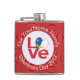 Höftkolv som visar Azorernas KÄRLEK FLAGGA. Ord KÄRLEK finns i rött brev i en vit, rektangulär cirkel av fyrkantiga fyrkanter. Cirkeln sitter på en röd, grå bakgrund av fyrkanter. Perfekt Valentines daggåva till honom, men kan anpassas till alla tillfälle. Njut av flagga Azorerna.