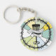 Personligens nyckelring för ett par. Den har skivans golftema och teal- och gult-popkonbakgrund. Cute Home-gåva till nygifta som gillar att skiva golf.