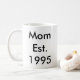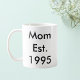Firar året hon fick sin favorittitel med den minimalistiska Mamma Est. [År] kaffe mugg. Lägg bara till milstolpen för att skapa en daglig påminnelse om kärlek, familjen och alla minnen sedan den första speciella dagen. Perfekt för Mor-dagen, födelsedagar, tillkännagivanden från baby, eller bara för att personlig mugg förvandlar varje steg till en varm hyllning till hennes resa moderskap. Ge det till nya mammor eller till långtidssupermoms och se hur deras ansikte tänds med pridet varje morgon.