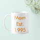 Firar året hon fick sin favorittitel med den minimalistiska Mamma Est. [År] kaffe mugg. Lägg bara till milstolpen för att skapa en daglig påminnelse om kärlek, familjen och alla minnen sedan den första speciella dagen. Perfekt för Mor-dagen, födelsedagar, tillkännagivanden från baby, eller bara för att personlig mugg förvandlar varje steg till en varm hyllning till hennes resa moderskap. Ge det till nya mammor eller till långtidssupermoms och se hur deras ansikte tänds med pridet varje morgon.