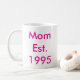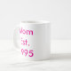 Firar året hon fick sin favorittitel med den minimalistiska Mamma Est. [År] kaffe mugg. Lägg bara till milstolpen för att skapa en daglig påminnelse om kärlek, familjen och alla minnen sedan den första speciella dagen. Perfekt för Mor-dagen, födelsedagar, tillkännagivanden från baby, eller bara för att personlig mugg förvandlar varje steg till en varm hyllning till hennes resa moderskap. Ge det till nya mammor eller till långtidssupermoms och se hur deras ansikte tänds med pridet varje morgon.