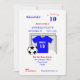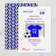Roligt fotboll: barn personlig anpassningsbar födelsedagsfest inbjudan med en blå fotbollströja, bollar och målnätsgrafik. Barn kommer att se sin namn och ålder på fotbolls-skjortan i kärlek och det är så enkelt att anpassa sig med dina party-uppgifter utan extra kostnad.
