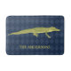 Tillsätt en personlig på vilden till badrummet med det här badbäcket. Detta badmatt eller badbalt har en realistisk illustration i stil av en alligator i ett oliv grönt färg mot en mönstrad marin bakgrund och är redot att vara personlig med ett namn i att matcha oliv grönt bokstäver.